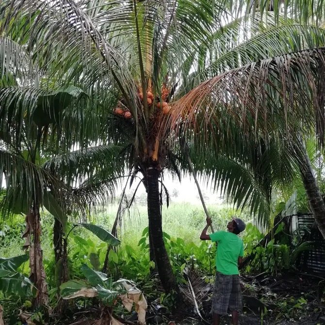 Tijdens een fietstocht in het Commewijne gebied in Suriname werden we uitgenodigd om bij iemand thuis even op adem te komen en een verse kokosnoot te drinken. Het was aan het regenen, dus dat aanbod sloegen we niet af. Er werd een kokosnoot uit de boom geplukt en op de veranda worden we voorgesteld aan twaalf katten. De regen tikt op de overkapping en wij genieten van de verse tropische vrucht. We krijgen een korte geschiedenisles over de plantage waar we op dat moment zijn en hebben leuke gesprekken. Na de bui stappen we weer op onze fiets en zeggen we hardop tegen elkaar, dat deze onverwachte ontmoetingen reizen altijd extra leuk maken.