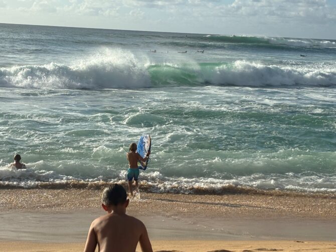 Als er één plek is waar je móét surfen, dan is het wel Hawaï. Voor mijn zoontje van 7 kochten we een bodyboard, zodat hij zijn eerste surfervaring kon opdoen. Echt een unieke ervaring hoe indrukwekkend hoog de golven daar zijn, een zwemvest is dan ook wel echt een must. Wat het extra bijzonder maakte is dat we tijdens het surfen regelmatig schildpadden zagen zwemmen.