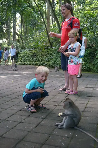 Het Monkey Forest is erg leuk om te bekijken. Koop geen banaantjes, want de apen springen net zo lang bovenop menig toerist tot ze de hele tros te pakken hebben gekregen. Wij hadden geen eten mee, dus we konden rustig door het apenbos rondlopen om de apen te bekijken!!!