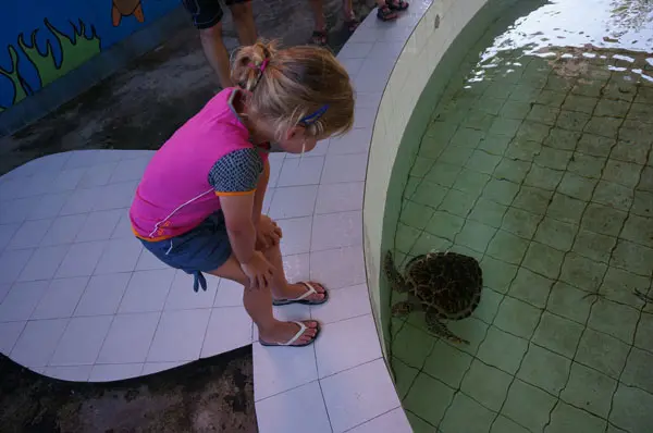 Wij zijn schildpadden fans en kwamen dus bij het schildpadden opvangcentrum uit. Deze mensen doen er alles aan om de soort te behouden en ze daarna weer uit te zetten in de natuur. Het bezoekje kost je niks, maar je mag evt. wel een donatie doen. Ook kun je een schildpadje uitzetten. Dit wordt allemaal officieel geregeld met een soort van adoptie diploma. Je krijgt er uitleg over wat ze allemaal doen. Erg leuk om voor de kinderen mee te maken. Wij hadden het geluk dat er net een nest met schildpadjes was uitgekomen, dus ze waren nog erg ieniemienie. Je kunt dit opvangcentrum vinden vlak bij de aanlegplaats van Bluewater express. Zij regelen de overtocht per speedboot naar de Gili eilanden.
