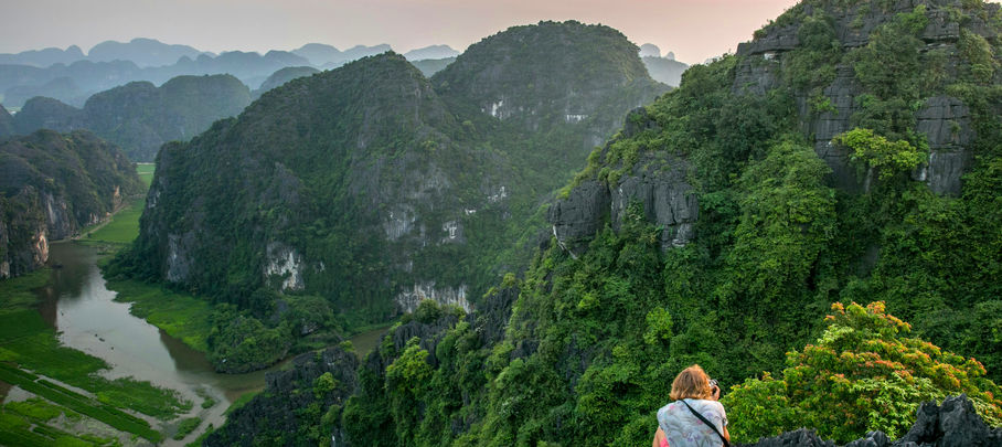 Geniet van de zonsopkomst tijdens uw ontbijt. Vervolgens stapt u aan boord van een lokale boot die u door de zogenaamde ‘Droge Baai van Halong’ voert. De indrukwekkende kalkstenen rotsformaties die oprijzen uit het water en tussen de groene rijstvelden leveren geweldige plaatjes op! Aansluitend maakt u een fietstour door de omgeving waarbij u kennis maakt met de lokale bevolking die hard aan het werk is op het land. Tot slot fietst u naar de Bich Dong-pagode, een van de populairste pagodes in Ninh Binh en omgeving.