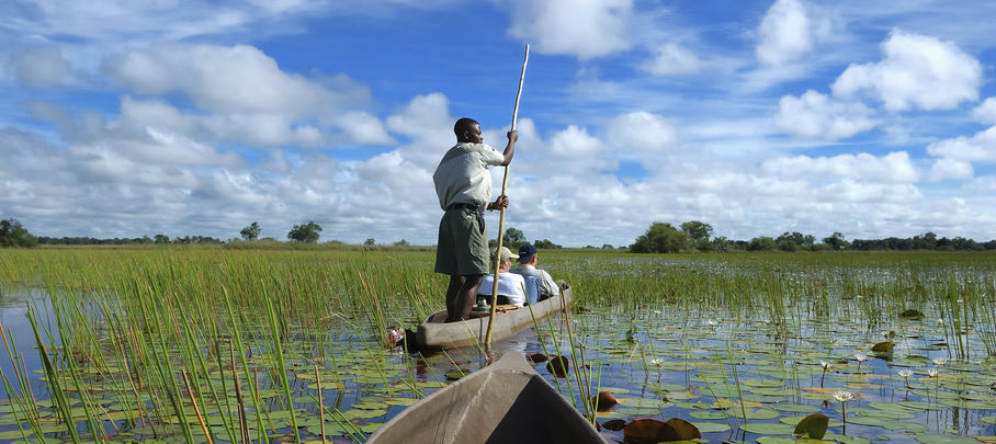Okavango Delta Dag 13 Vandaag gaat u met uw gids de delta verkennen. Een tochtje maken met een mokoro is de traditionele manier om de delta te bezoeken. Een mokoro is als het ware een uitgeholde boomstam, dus een traditionele kano. Deze wordt voortgeduwd door uw gids met een lange stok. Zo vaart u in rustig tempo en in alle stilte door één van de meest bijzondere natuurgebieden ter wereld met een grote kans op het spotten van wilde dieren.